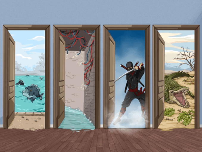 4. One Door Has Piranhas, Another Has Exposed Electrical Wires and Water, Another Has a Dangerous Ninja, and the Last One Has a Hungry Alligator. Which Door Is Safe?