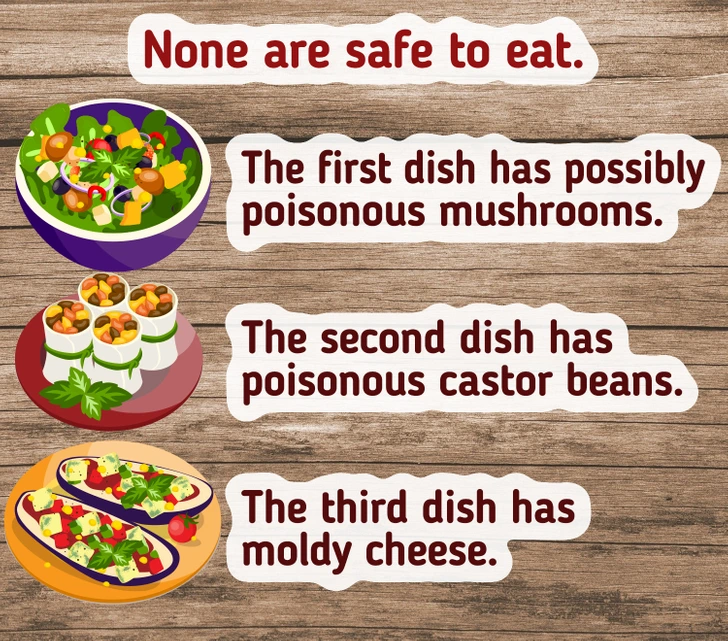 Presented with three food options, you have to choose which one is the safest. The twist? They all look equally appetizing.