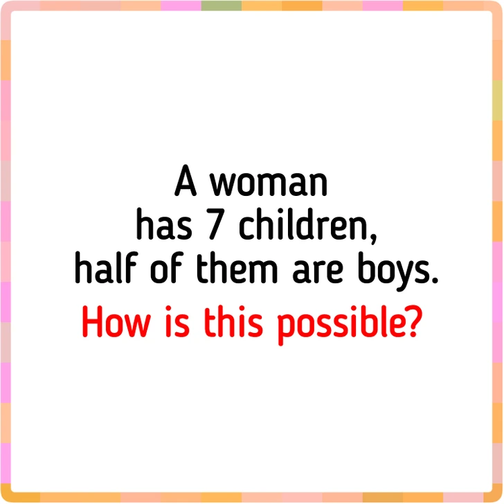 Answer: All seven children are boys. This means that half (and the other half) are boys.