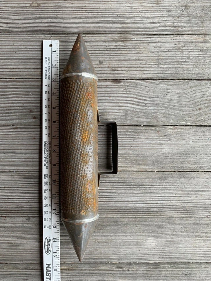 This lightweight, unidentifiable object turned out to be a güira, a traditional musical instrument from the Dominican Republic. It’s made of metal and has a textured surface that is scraped with a wire or stick to produce a unique sound, often used in Latin music.