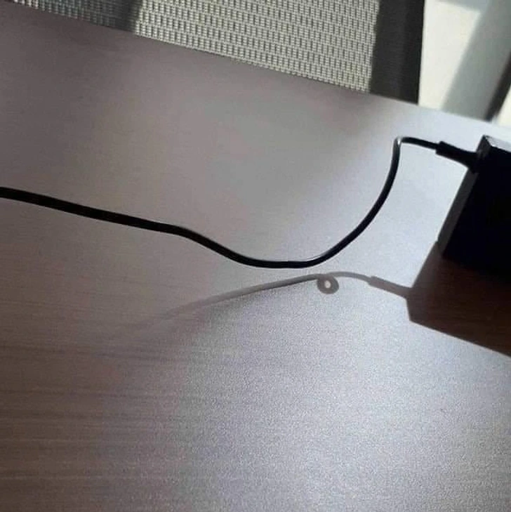 This photo captures a shadow creating the illusion of a perfectly circular loop in a straight cord. How is that even possible? It’s all thanks to the angle of the light and the curvature of the cord, tricking your brain into seeing something that doesn’t exist. This captivating interplay between light and shadow transforms the ordinary into the extraordinary.