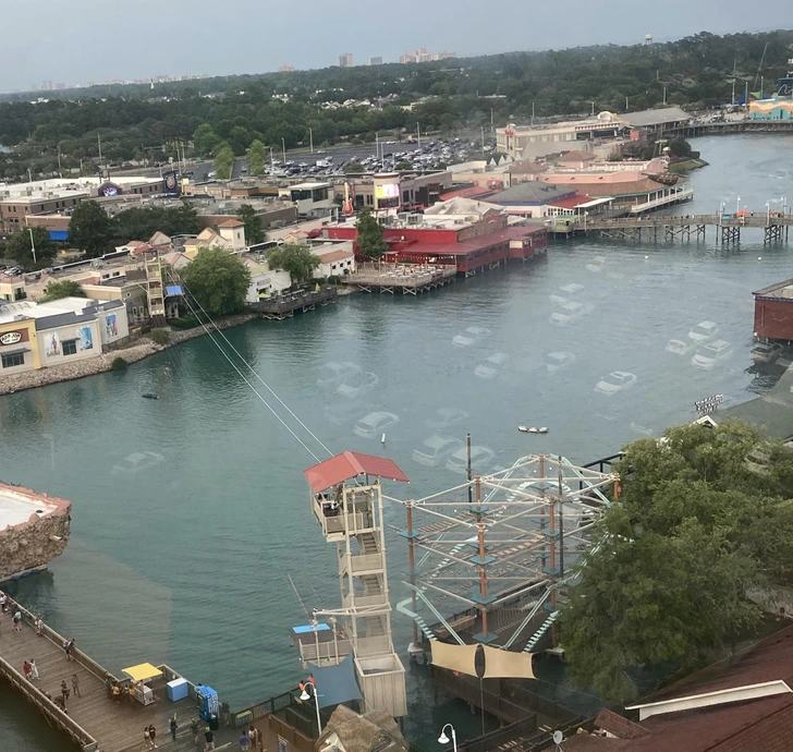 From the right angle, a reflection can create stunning illusions. This photo, taken from a Ferris wheel, makes it seem like cars are floating underwater. In reality, it’s just the parking lot reflected on a nearby surface.