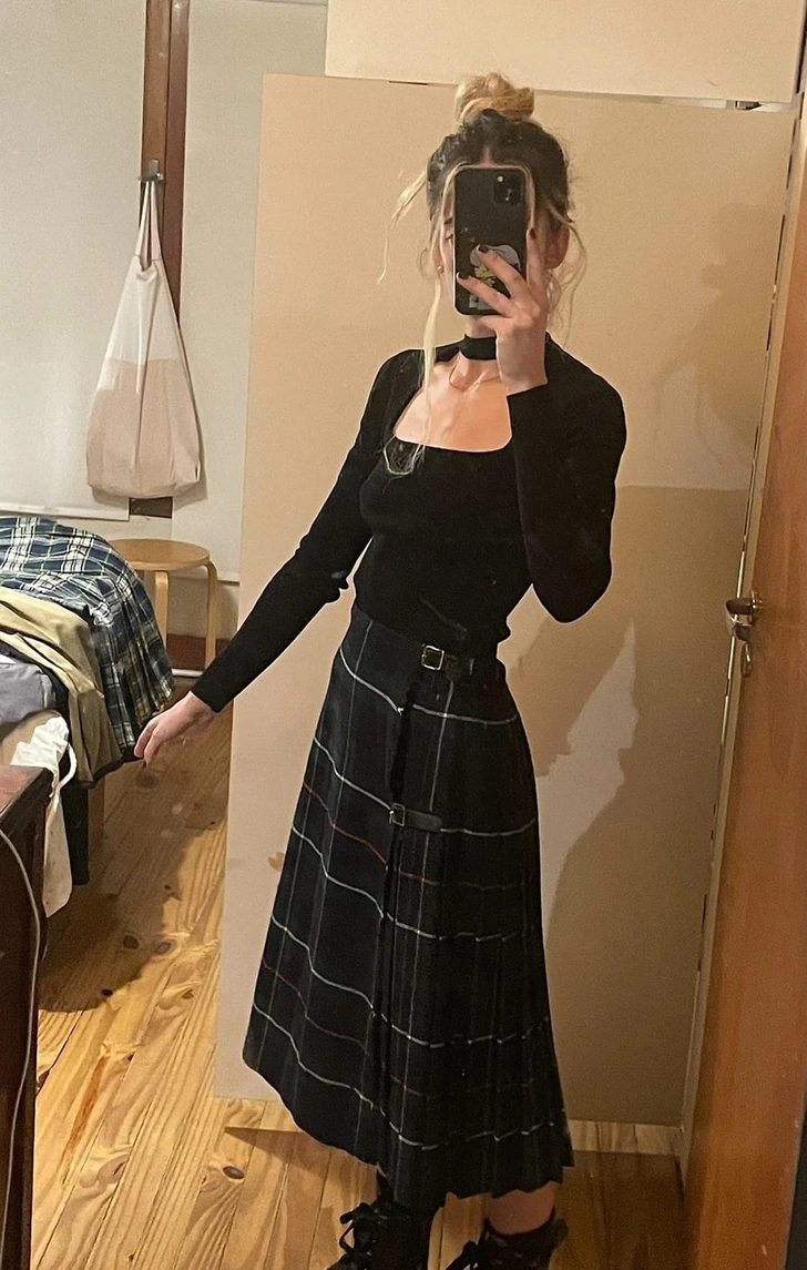 “My grandma passed down this 1970s wool kilt by The Scotch House, and it’s a wardrobe staple for me now.” Kilts, with their timeless patterns, have remained classic pieces over the decades. Wearing this kilt not only brings style but also keeps family traditions alive.