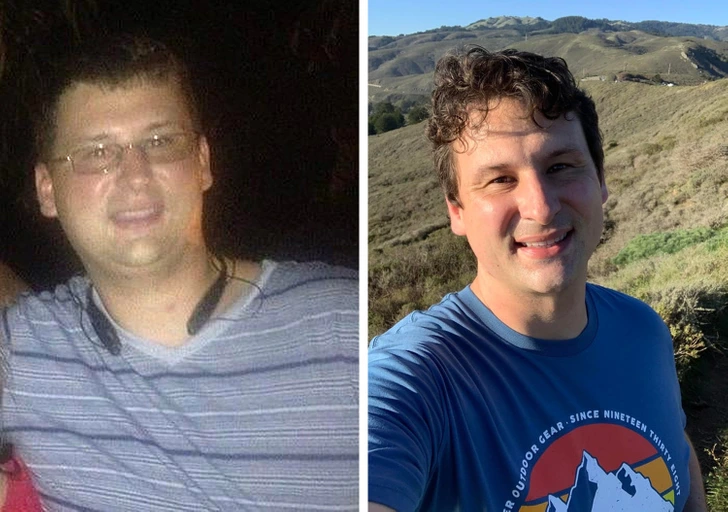 Weighing over 250 lbs at 29, this individual turned to hiking and mindful eating. By 30, they had lost 30 lbs, found their style, and felt better than ever.