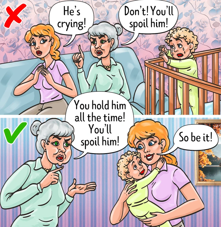 Older generations often believed that responding to a baby’s cries too quickly would spoil them. Now, we understand that babies cry because they need something—whether it’s food, comfort, or reassurance. Responding to a baby’s needs promotes security and attachment, which is essential for their emotional development.
