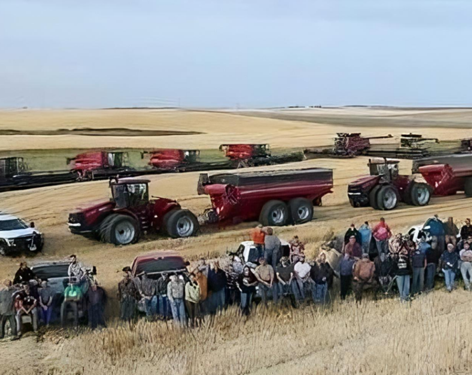 Word of Lane’s health crisis and his unfinished harvest spread quickly through Divide County. Without hesitation, neighbors, friends, and even strangers united to help. More than 60 farmers from the surrounding area paused their own work to lend a hand, determined to save the Unhjems’ crops.