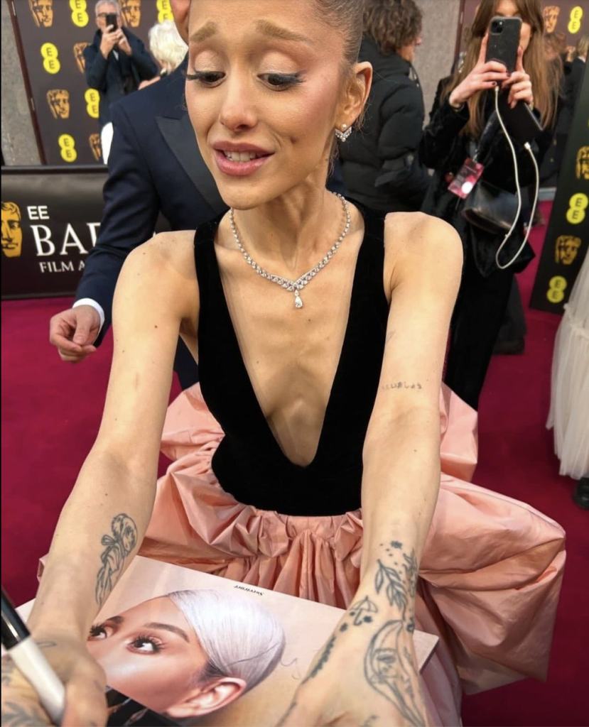 Ariana Grande, always the spotlight darling, turned heads once again at the 2025 BAFTA Film Awards—not just for her stunning presence but for a deeper concern echoing across the internet. As she paused on the red carpet to sign fan photos with her signature grace, it wasn’t her autographs that made headlines—it was her appearance. Fans weren’t just starstruck. They were worried.