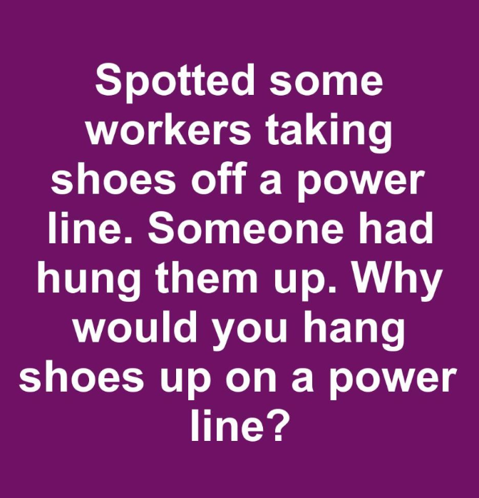 - A harmless prank – Many cases of shoes on power lines are simply the result of teenagers playing around, testing their ability to get them to land on the wires.