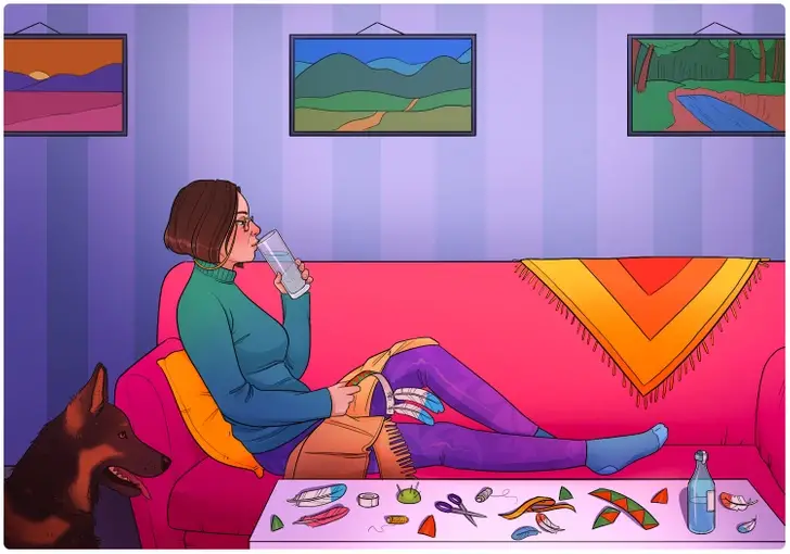 Our third brain teaser is a bit more somber. A middle-aged woman sits alone at a table with her faithful dog by her side. The table setting suggests this might have been a gathering meant for more people. But something strange catches our eye. Take a close look at the water bottle in front of her. The seal is still intact, yet the water level is visibly lower. How can this be?