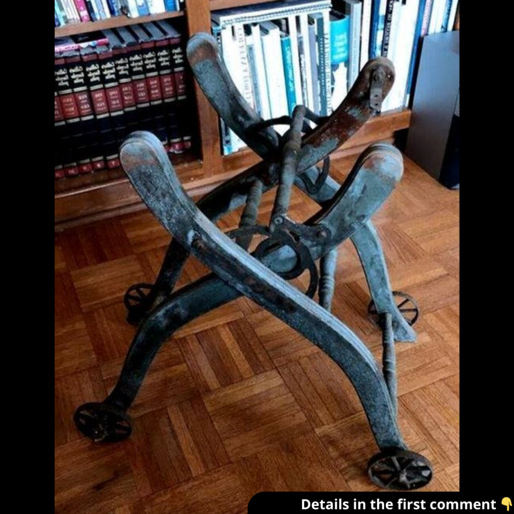 Some historians propose that it was part of an early manual washing machine. Before electric appliances became widespread, many washing machines relied on manual cranks and sturdy frames, which this object could easily resemble. - A Baby Stroller Base
