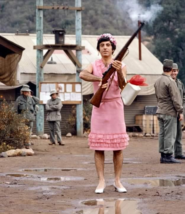 - His outrageous costumes – Whether he was dressed as Scarlett O’Hara or Cleopatra, his outfits added an extra layer of humor to an otherwise serious war setting.