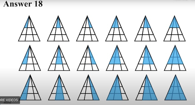 When you add these together, the total is 18 triangles!