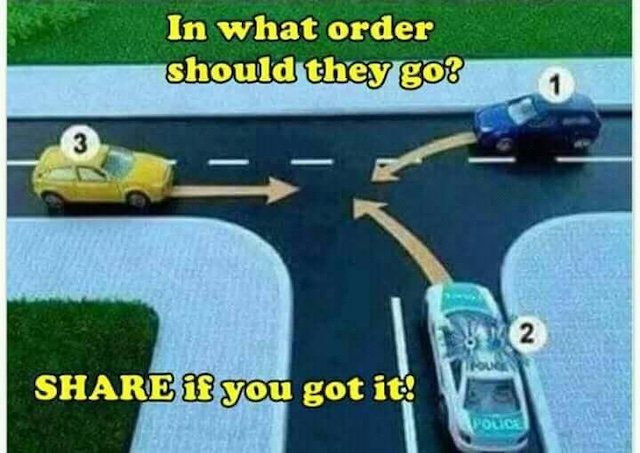 So, if the police car is responding to an emergency, it will go first, and the other two vehicles must wait.