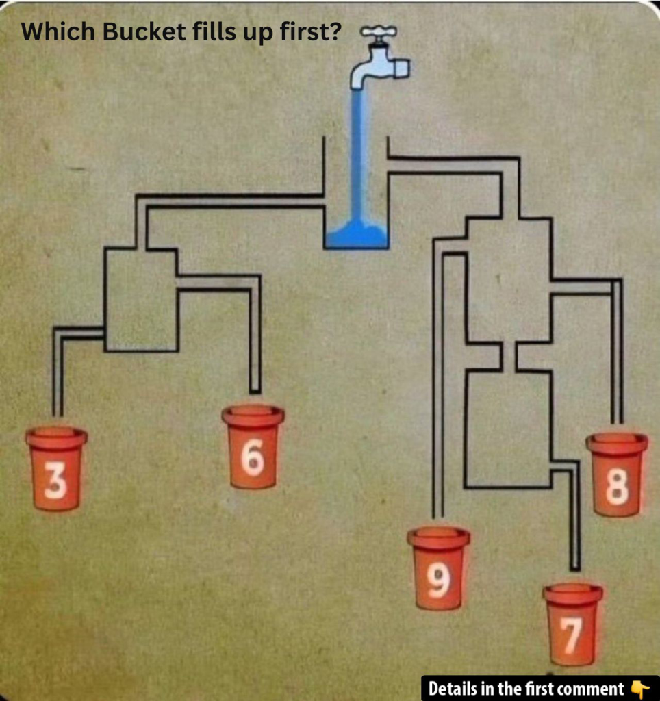 At first glance, this puzzle seems straightforward—water flows from a faucet into a series of interconnected pipes leading to multiple buckets. Your challenge? Determine which bucket fills up first. Sounds easy, right? Not so fast!