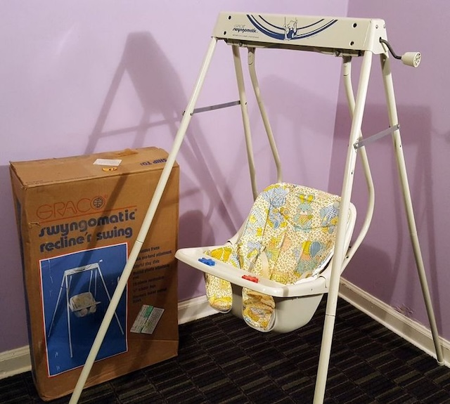 If you grew up during those decades, chances are there’s a baby photo of you in one of these swings. Probably wearing a bib, chubby cheeks rosy, tiny hands gripping the edge of the seat.