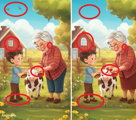 So, how many did you find before checking the answers? If you spotted all five — Grandma’s earring, the boy’s shoe strap, the missing birds, the windowpane, and the cow’s bow — give yourself a high five. If not, don’t worry — you just gave your brain a great workout.
