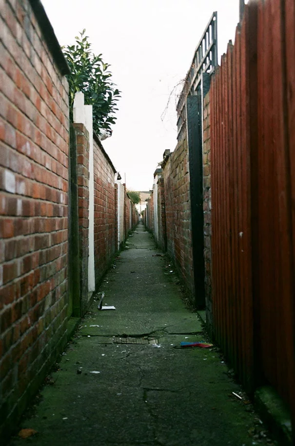 Hint: Look for shapes or colors that break up the lines of the alley walls.