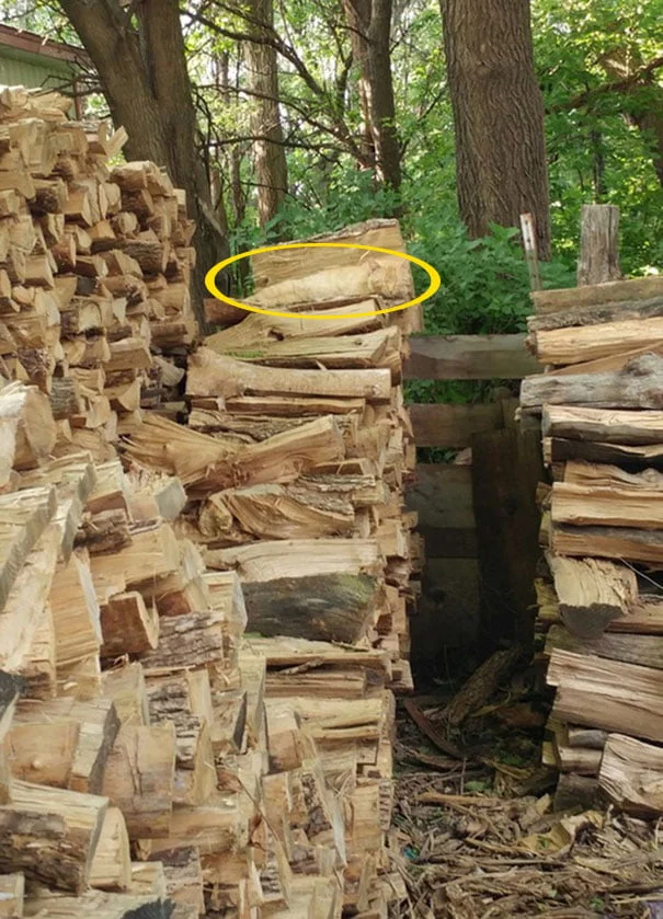 There’s a cat hiding within a pile of logs. It’s resting comfortably, but can you spot it?