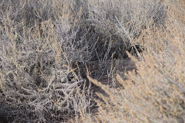 In this scene, an animal is perfectly camouflaged within its environment. It takes a keen eye to find it among the shadows and shapes.