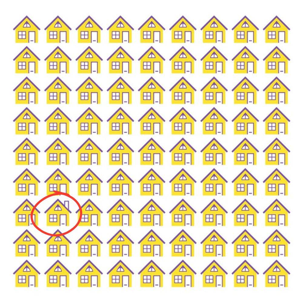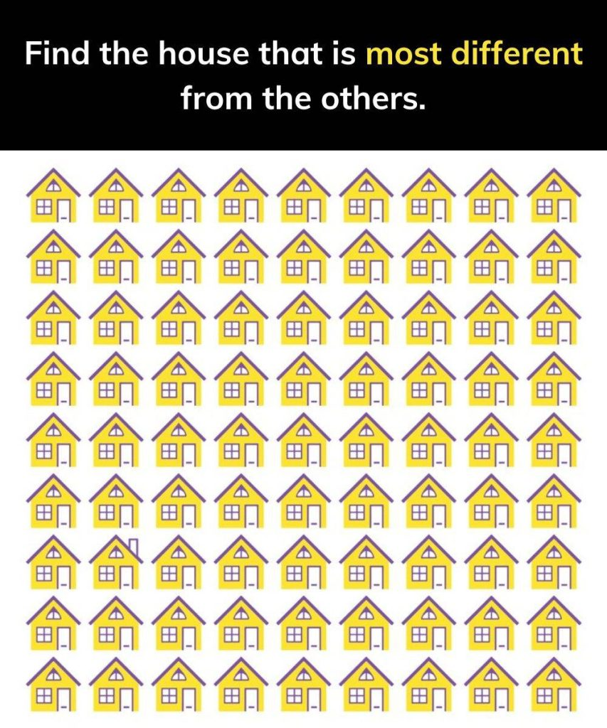 At first glance, all the houses in the image look exactly the same. But don’t be fooled—one house is slightly different from the rest.