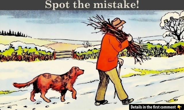 When you focus too much on bold colors or the cute dog, it’s easy to skip over the detail that actually breaks the logic of the scene. Some people might guess the number of sticks is odd. Others might point to the dog’s shape or the color of the jacket.