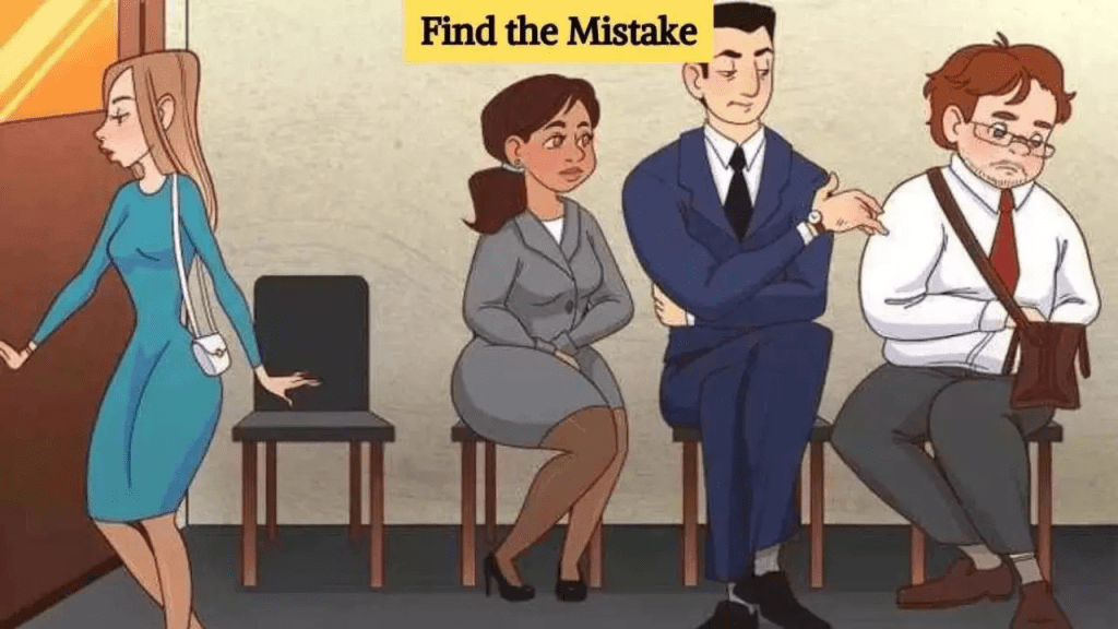 Have you ever noticed how the tiniest detail can completely change your perception of a situation? If you’re a fan of brain-teasers and love spotting hidden errors, this visual puzzle is just for you! Imagine a scene where four people are waiting in a room for an interview. Two men and two women are present, with one of the women already heading toward the interview room. Your task is simple: spot the mistake. Sounds easy? Think again! This puzzle is trickier than it appears. Let’s see if you can solve it!