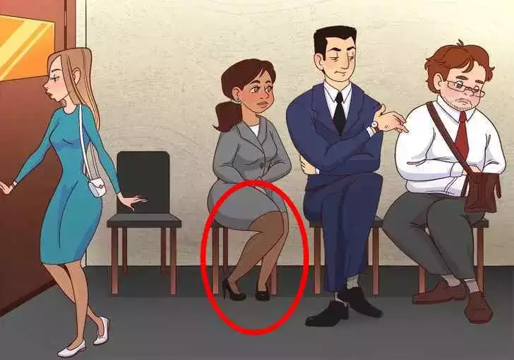 The smallest details often reveal the biggest clues. Take a closer look at the women’s outfits in the waiting area. One of the women appears to be wearing stockings, which is common in professional settings. But don’t stop there—observe every detail closely.