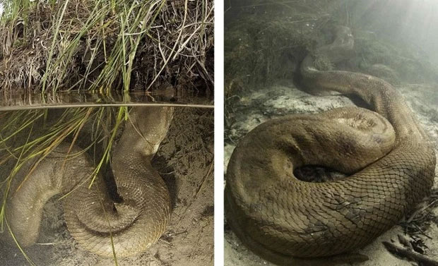 Video: Diver has incredible face to face encounter with giant anaconda
