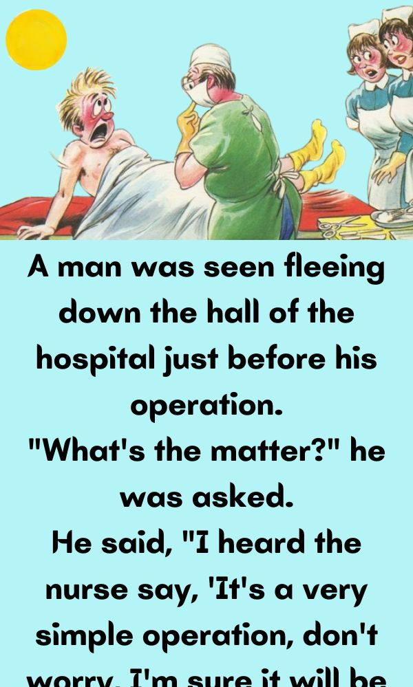 It’s the fear we all have—what if the people operating on us don’t know what they’re doing? The joke flips that fear into comedy, making it not just funny, but also cathartic. We’ve all imagined the worst-case scenario before surgery, but this man actually runs from it.