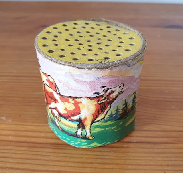 Often made of tin or metal, these cans featured colorful farm-themed illustrations, typically showcasing cows, barns, and rolling pastures. They were sold as inexpensive novelty toys but quickly became a household favorite. While initially marketed toward children, even adults found amusement in the toy’s ability to recreate a surprisingly realistic cow sound.