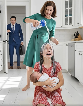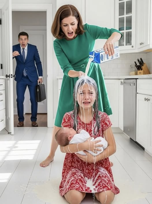 Emily sat on the floor, her clothes soaked with milk, trembling as she clutched her baby brother. Across from them stood Vanessa, gripping an empty pitcher, her face twisted with rage.