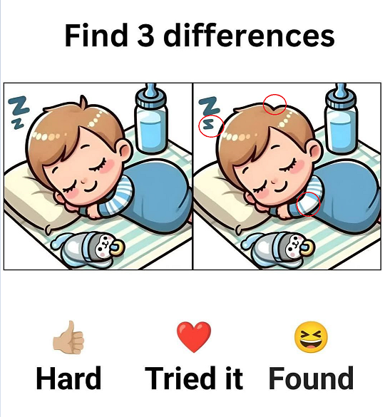 This little puzzle of a baby photo may seem innocent, but it’s a sneaky brain teaser that tests your focus, memory, and attention to detail. If you’ve spotted all three differences, congrats—you’ve got a seriously sharp set of eyes. And if you’re still hunting, don’t worry. That moment of discovery is just around the corner.