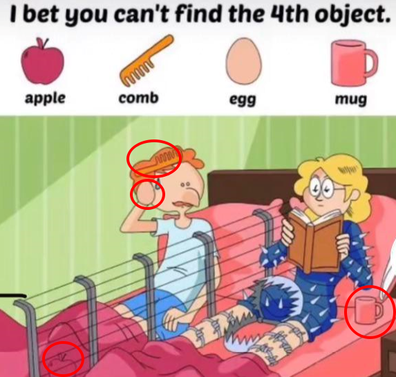 So go ahead, take a closer look, find the apple, comb, egg, and mug—and enjoy every second of the challenge.