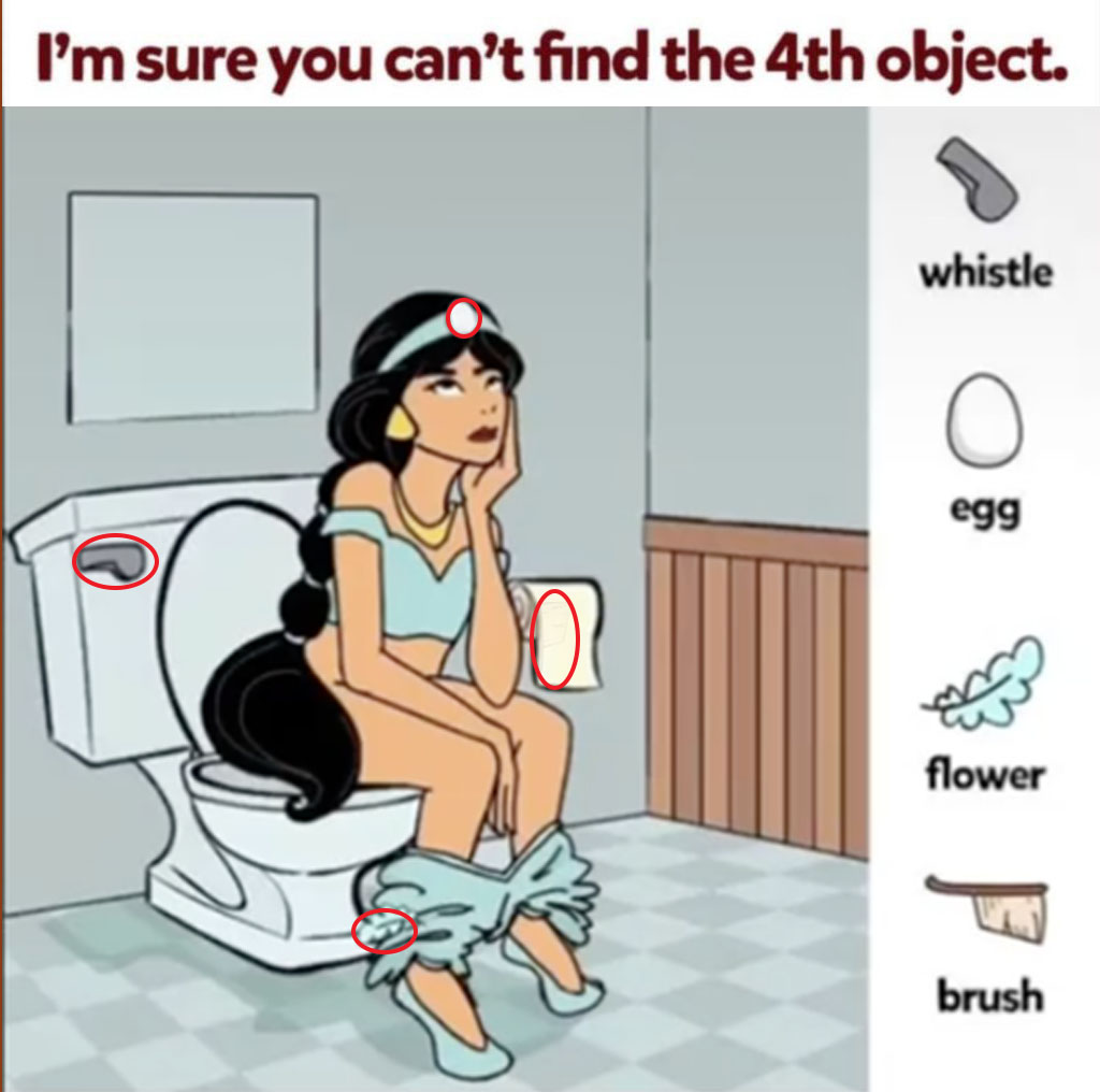 It’s not every day you see a princess on a porcelain throne—especially not one surrounded by a chaotic flurry of everyday objects. But that’s exactly the scene that’s got the internet buzzing with one question: Can you find the brush, egg, flower, and whistle in this mess of a royal bathroom?