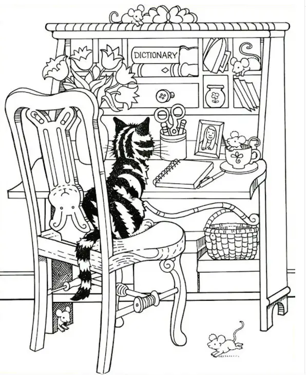 The moon is often embedded in shapes that mimic its curves. In this puzzle, the moon can be found cleverly placed on the cat’s back. Look for its crescent shape and light contrast that distinguishes it from surrounding patterns.