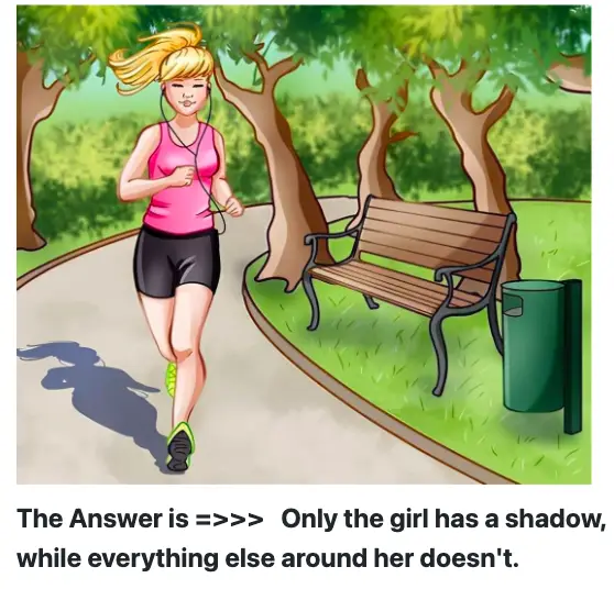 At first glance, the image of the girl running appears completely normal—a peaceful park, a jogger enjoying her run, and sunlight casting a golden glow. But hidden within this seemingly perfect scene is a glaring mistake.