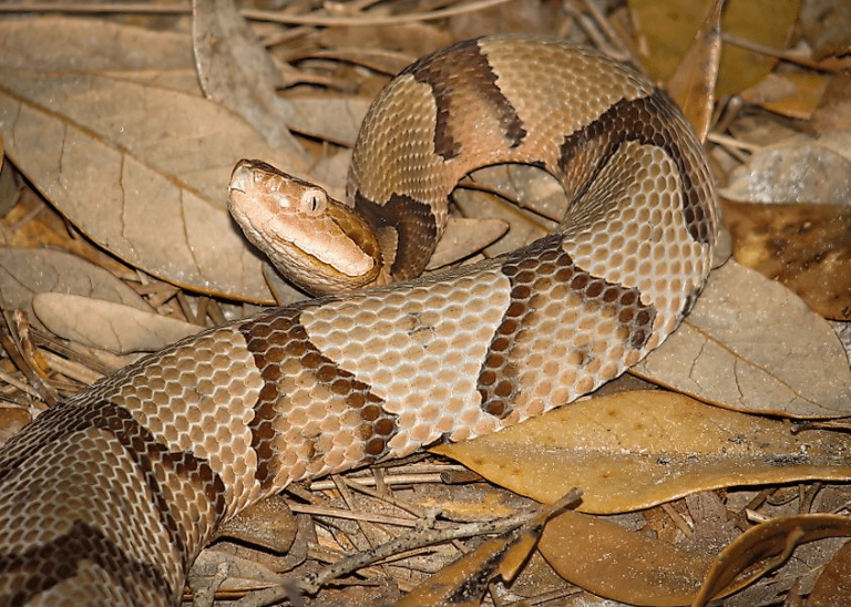 Copperheads are sneaky. Their copper-toned bodies blend perfectly with dead leaves and mulch. You might not even see one until you’re a few inches away — and by then, it could be too late.