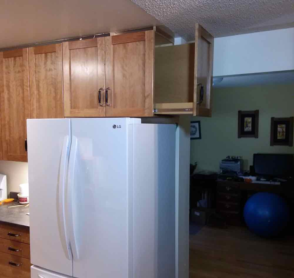 While it’s great to maximize your storage, safety should always come first. When accessing the cupboard above your fridge: