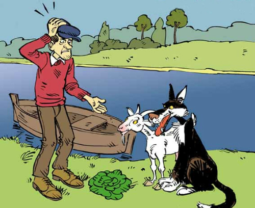 Follow along as we break down each move needed to ensure the wolf, goat, and cabbage all make it safely to the other side.