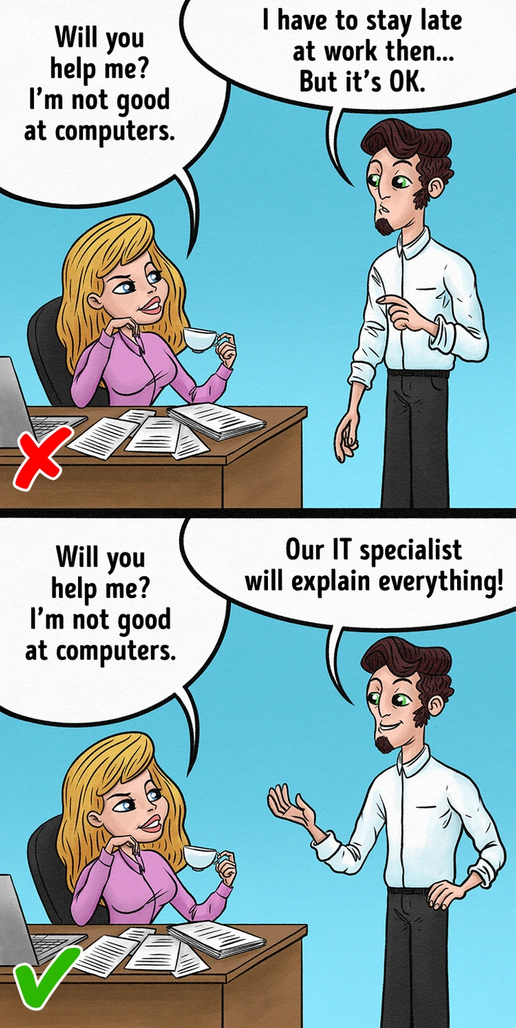 While this behavior is common among women, men increasingly resort to this tactic as well. The helpless manipulator seems to effortlessly move up in life, but it’s always at the cost of someone else’s time and effort.