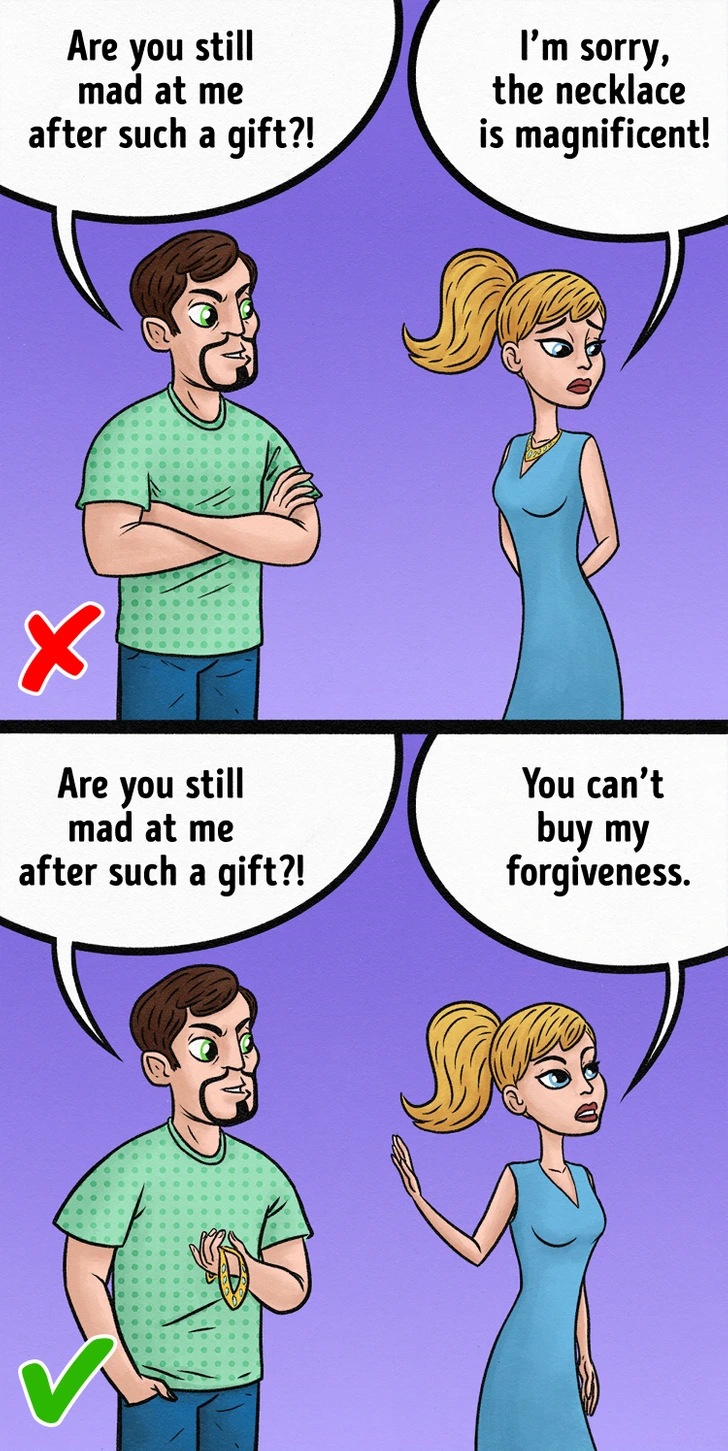 You might feel pressured to forgive them or let the issue go simply because they’ve given you something. While it’s natural to want to appreciate the gesture, it’s crucial not to let it replace a proper resolution of the conflict.