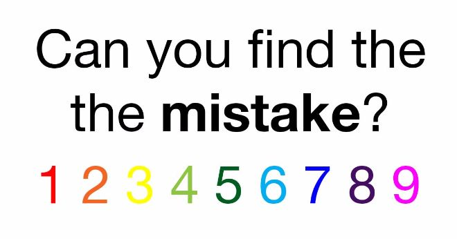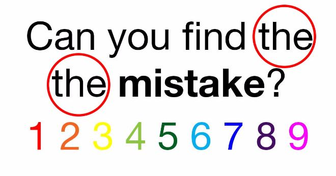 Now that you’ve examined everything else, go back to the phrase one more time. Take a moment to really focus on each word individually. That’s when you’re most likely to catch the repeated “the” in “Can you find the the mistake?”
