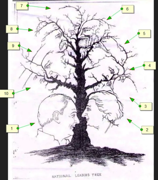 It looks simple enough. A tree with dense branches and shadowy leaves, maybe even some old-school pencil shading. But it’s hiding something. Tucked between the curves and contours of bark and leaves are human faces—cleverly camouflaged, expertly hidden.