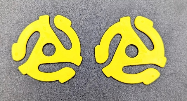 Some adapters were plastic, others metal. The bright yellow plastic version is perhaps the most iconic—recognizable to collectors and instantly nostalgic to vinyl lovers. It stood out visually and was hard to misplace, adding a splash of personality to any record setup.