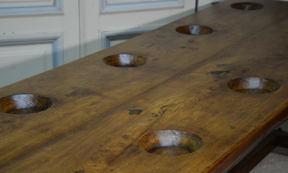 Step back in time to the late 19th century and imagine a cozy Dutch home warmed not by modern central heating but by the practical yet artfully crafted pieces of furniture that defined everyday life. One such treasure is a large antique wooden table, purchased in the Netherlands and dating back to 1893. What makes this table truly remarkable is its unique design featuring 12 built-in bowls, each seamlessly integrated into the tabletop. These built-in bowls hint at a specialized communal purpose and provide a fascinating window into the traditions and social practices of the past. In this article, we’ll explore the historical context, exquisite craftsmanship, possible uses, cultural significance, and enduring allure of this captivating piece of history.