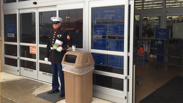 One Twitter user wrote, “This Marine stood for our country, and now he’s standing outside in the cold because of corporate greed. Disgusting!” Another commented, “Walmart, is this how you honor our veterans?”