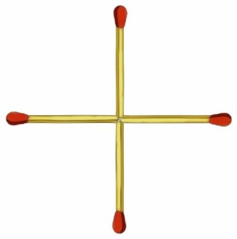 Take a moment to study the cross made by the four matchsticks. Notice the intersection at the center where the sticks overlap. This small detail is the key to the solution.
