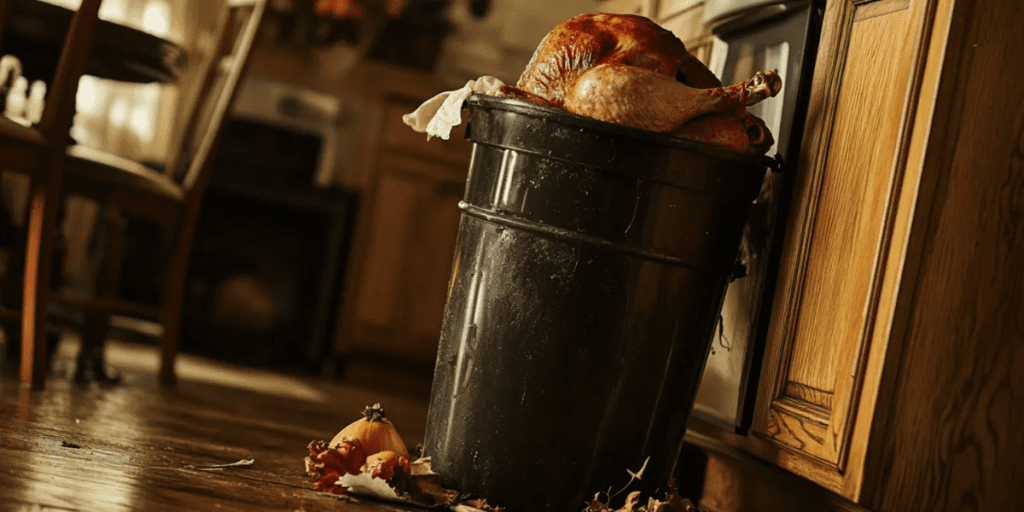 Without saying a word, Mark marched into the dining room, grabbed the turkey with his bare hands, and carried it into the kitchen. Before I could stop him, he threw the entire bird into the trash.