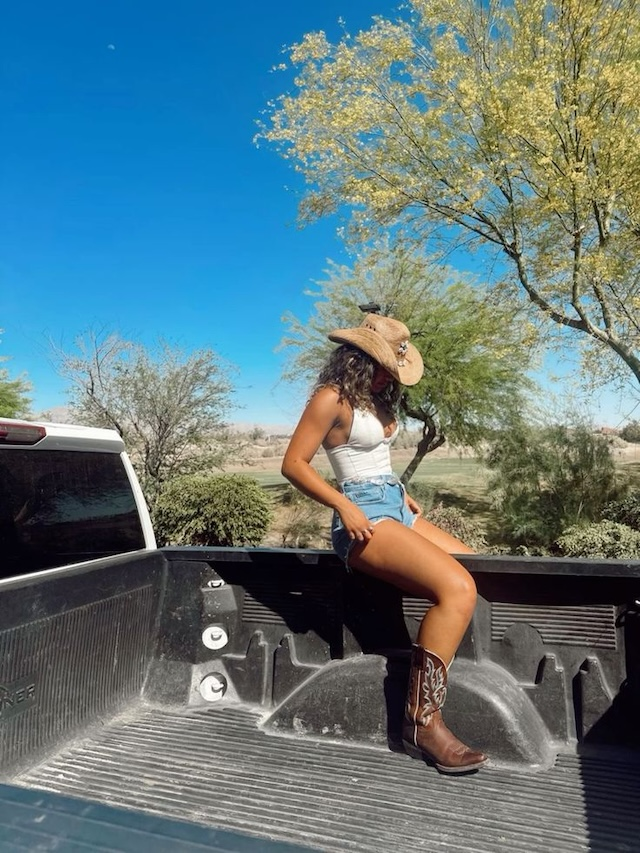 At first glance, the photo appeared ordinary—a woman enjoying a sunny day while sitting on the back of a pickup truck. Dressed in a casual cowgirl outfit, she exuded a carefree vibe. Nothing about the image seemed dramatic or unusual.