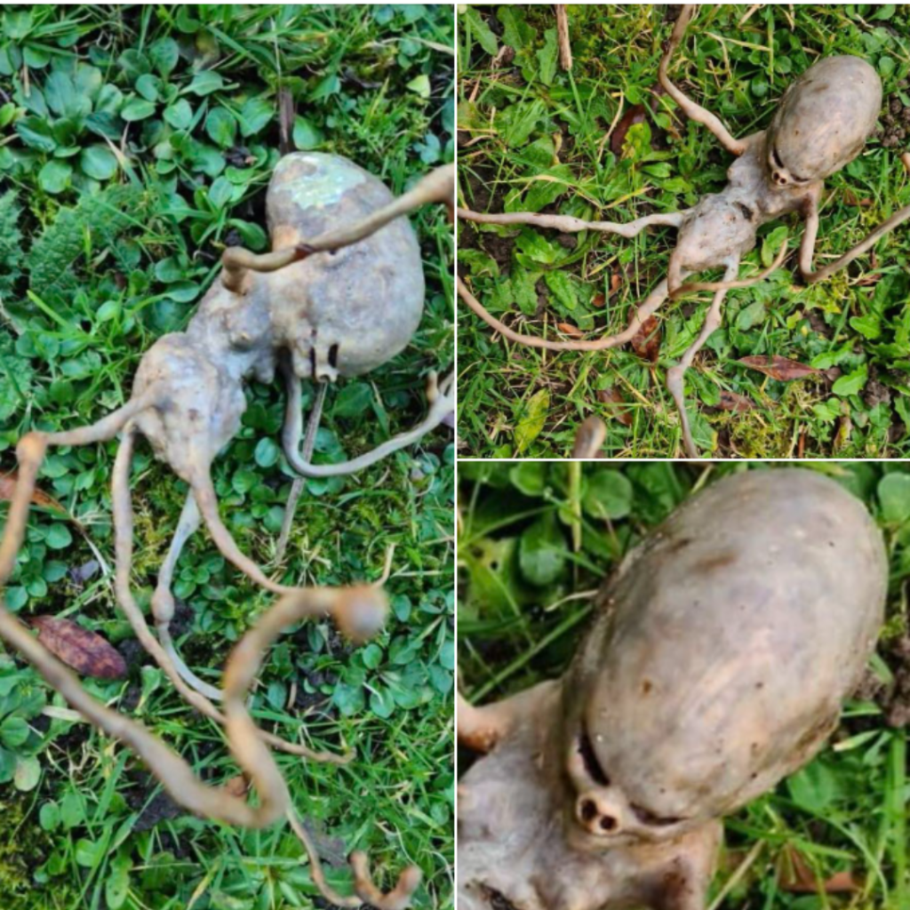 Imagine waking up, stepping outside, and finding something strange lying in your garden. That’s exactly what happened to one woman, who stumbled upon an odd, “alien-like” object with an oblong skull, narrow torso, and long, reed-like limbs where arms and legs would normally be. Intrigued and slightly unsettled, she turned to the internet for answers. What ensued was a flurry of theories, debates, and speculations across social media, with no definitive answer in sight.